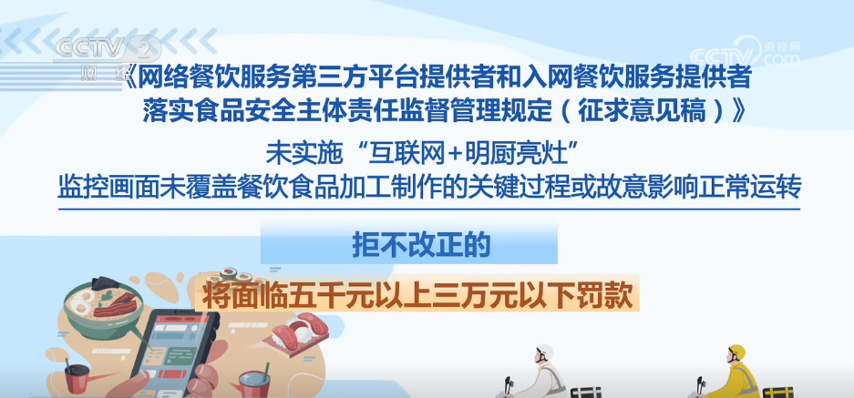 收罗看法稿明白了各方式律义务,将面对五千元以上三万元以下罚款。未实施“互联网+明厨亮灶”、画面未笼盖餐饮食物加工制做的环节过程或居心影响一般运转,对于无堂食外卖供给者,这份办理划定收罗看法稿有哪些亮点?